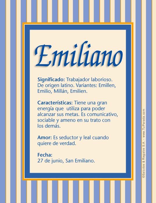 Además, Emiliano también se usa como un nombre para niños en algunas culturas, y significa "valiente, fuerte y protector".
